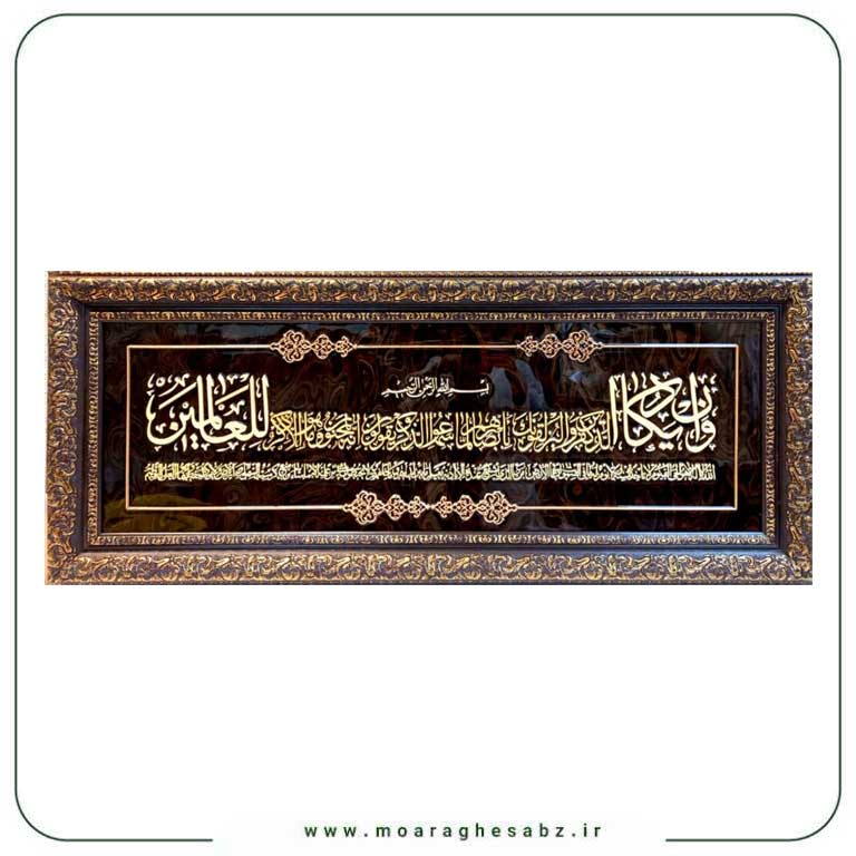 در مجموع، این تابلو نهتنها یک اثر هنری چشمگیر است، بلکه حامل مفاهیم دینی عمیق و حس آرامشبخشی است که میتواند فضای هر خانه یا محل کاری را متحول کند. طراحی افقی آن نیز بهویژه برای نصب در فضاهای دیواری بلند یا بالای مبلمان ایدهآل است و به خوبی جلوهگری میکند.