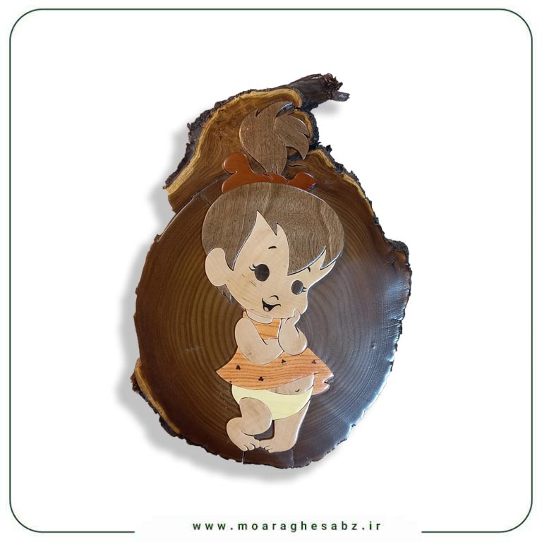 زمینه این تابلو از چوب سنجد ساخته شده است. چوب سنجد رنگی روشن و گرم با بافت نرم دارد که برای آثار کودکانه بسیار مناسب است. این چوب، حس لطافت و طبیعی بودن را القا میکند و بهخوبی با عناصر دیگر هماهنگ میشود. حضور چوب سنجد در پسزمینه باعث شده تابلویی با فضایی آرام و دوستداشتنی ایجاد شود که با حالوهوای دکور اتاق کودک، خصوصاً اتاق دختران، سازگاری بالایی دارد.