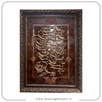 قاب چوبی کلاسیک با طراحی هماهنگ با طرح اثر، نقش مهمی در زیبایی کلی تابلو دارد. قاب به اندازهگیری نهایی تابلو اضافه شده و آن را به اثری تمامشده و آماده نصب تبدیل میکند. اندازه نهایی ۶۹×۸۲ سانتیمتر، ابعادی حرفهای برای دیوارهای اصلی منزل یا مکانهای مذهبی است.