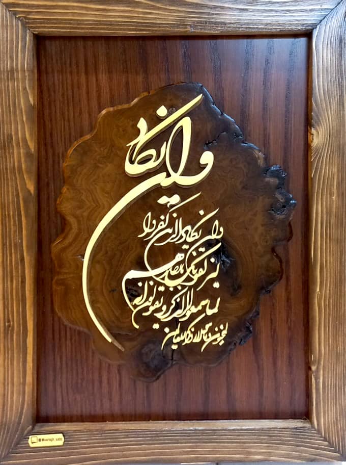 در این تابلو، زمینه کار از چوب جوش ساخته شده است؛ چوبی با بافت زیبا و منحصربهفرد که طرحهایی طبیعی و موجدار دارد. این زمینه زنده و گرم، بستری مناسب برای نمایش متن مقدس فراهم میآورد و باعث میشود حروف یا نقوش معرق، با وضوح بیشتری جلوهگر شوند. نوشته وان یکاد معمولاً با چوبهایی با رنگ متفاوت (مانند نارنج، گردو یا گلابی) معرق شده و بهصورت برجسته روی زمینه مینشیند.